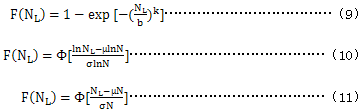 9.2在未知試驗齒輪的壽命分布函數時,一般採用二參數威布爾分布、對數正态分布或正态分布進行分布檢驗,確定分布類型。三種分布函數分别爲 :