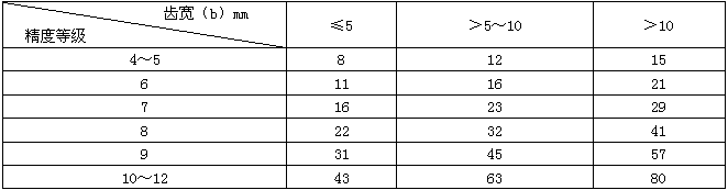 注:正交齒輪副按中點錐距Rm查表。非正交齒輪副按下式算出的Rm′查表:
