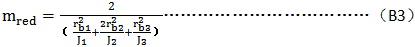 此時,假定内齒圈的質量爲無窮大,因此 ,誘導質量等於行星齒傳輸線的當量質量,mred由式(B2)確定: