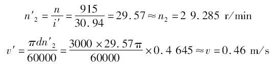 查表A1,選取MQ滿足不等式Mjmax≤MQ≤Mmax的型号 ,選取YZX132M242,其MQ=2903 N·m電機轉速n=915r/min,實際傳動比i′=30.94(表A2)。