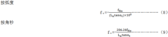 齒廓傾斜偏差可按下列公式換算爲壓力角偏差fα
