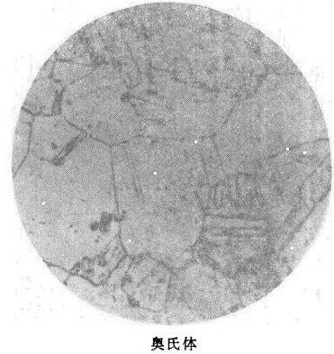 奧氏體(A)是碳在γ-Fe中的固溶體,經硝酸酒精溶液腐蝕後,在光學顯微鏡下其組織爲晶界清晰可見 ,晶粒大小不等的白黃色顆粒,如圖所示: