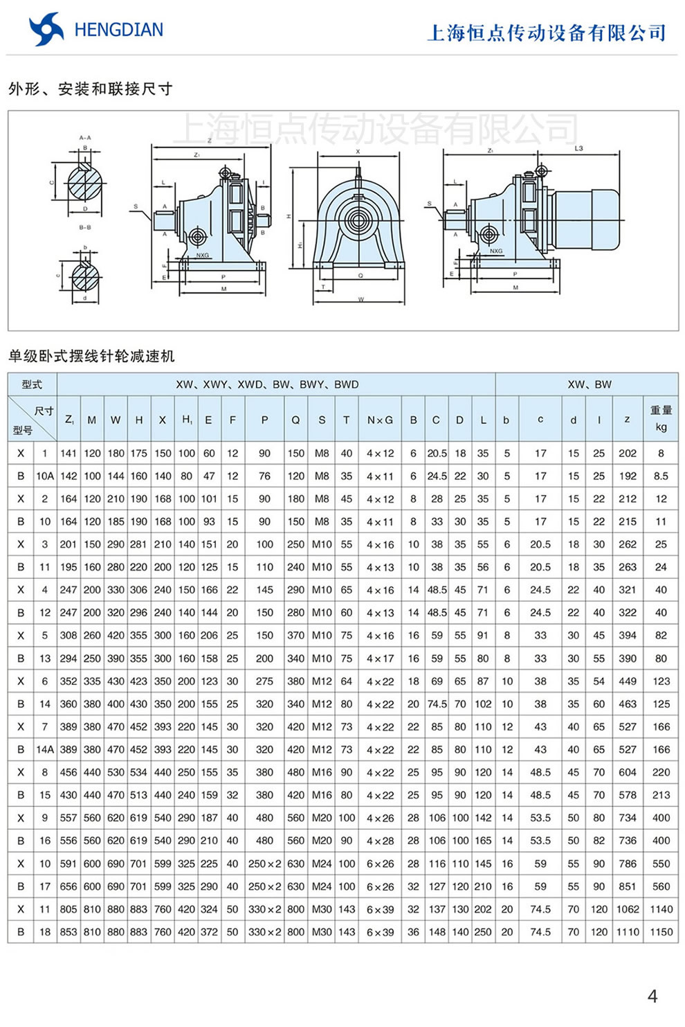 1 - X/B擺線減速機基本介紹 2 - X/B擺線減速機型号,規格和扭矩力表